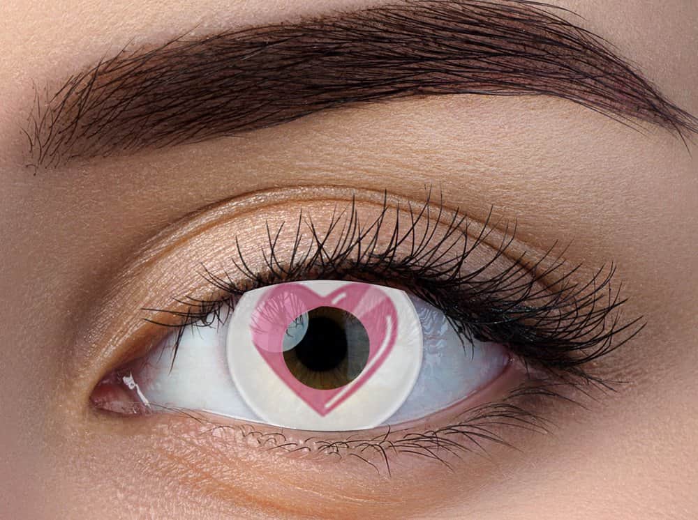 זוג עדשות צבע שנתיות בצבע לבן ואדום דגם לב
