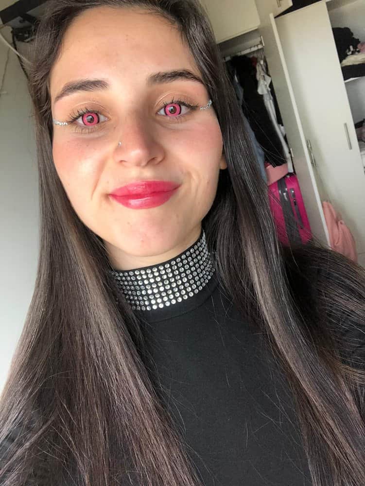 זוג עדשות צבע שנתיות בצע ורוד עם קו שחור תוחם