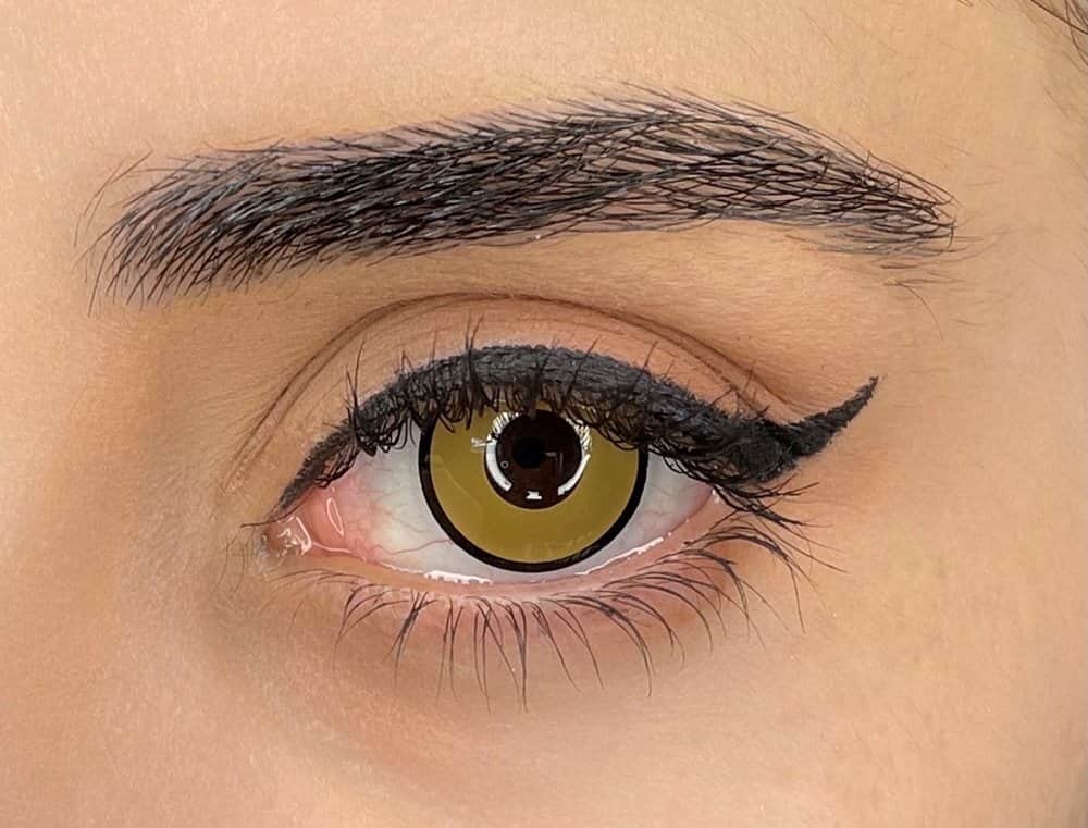 זוג עדשות צבע שנתיות בצבע צהוב עם קו שחור תוחם